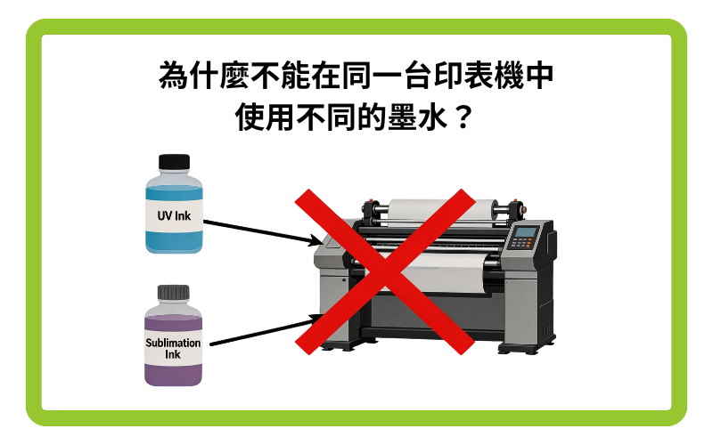 在數位噴墨印刷中,墨水的選擇不僅影響列印品質,更直接關係到設備的穩定性與使用壽命。每個墨水品牌都有其專屬配方與品質控制標準,這些配方通常是依照特定印表機系統、噴頭結構與流體特性所設計。因此,在同一台印表機中混用不同品牌或不同類型的墨水,往往會造成一系列潛在風險。